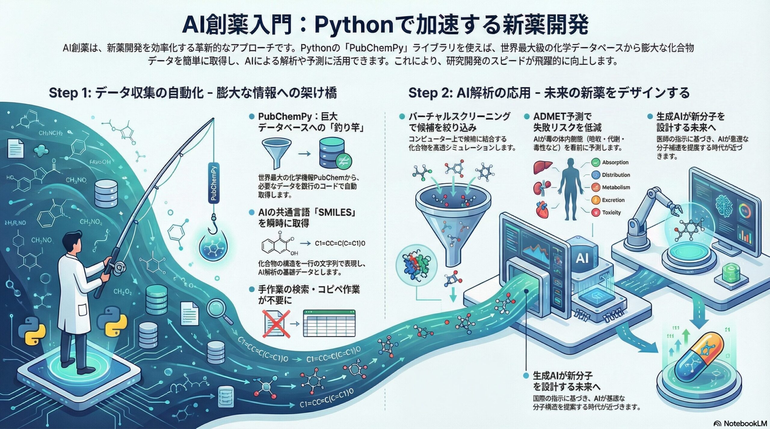 PythonとPubChemPyを活用したAI創薬のプロセス:膨大な化合物データから未来の新薬をデザインするまでのステップ