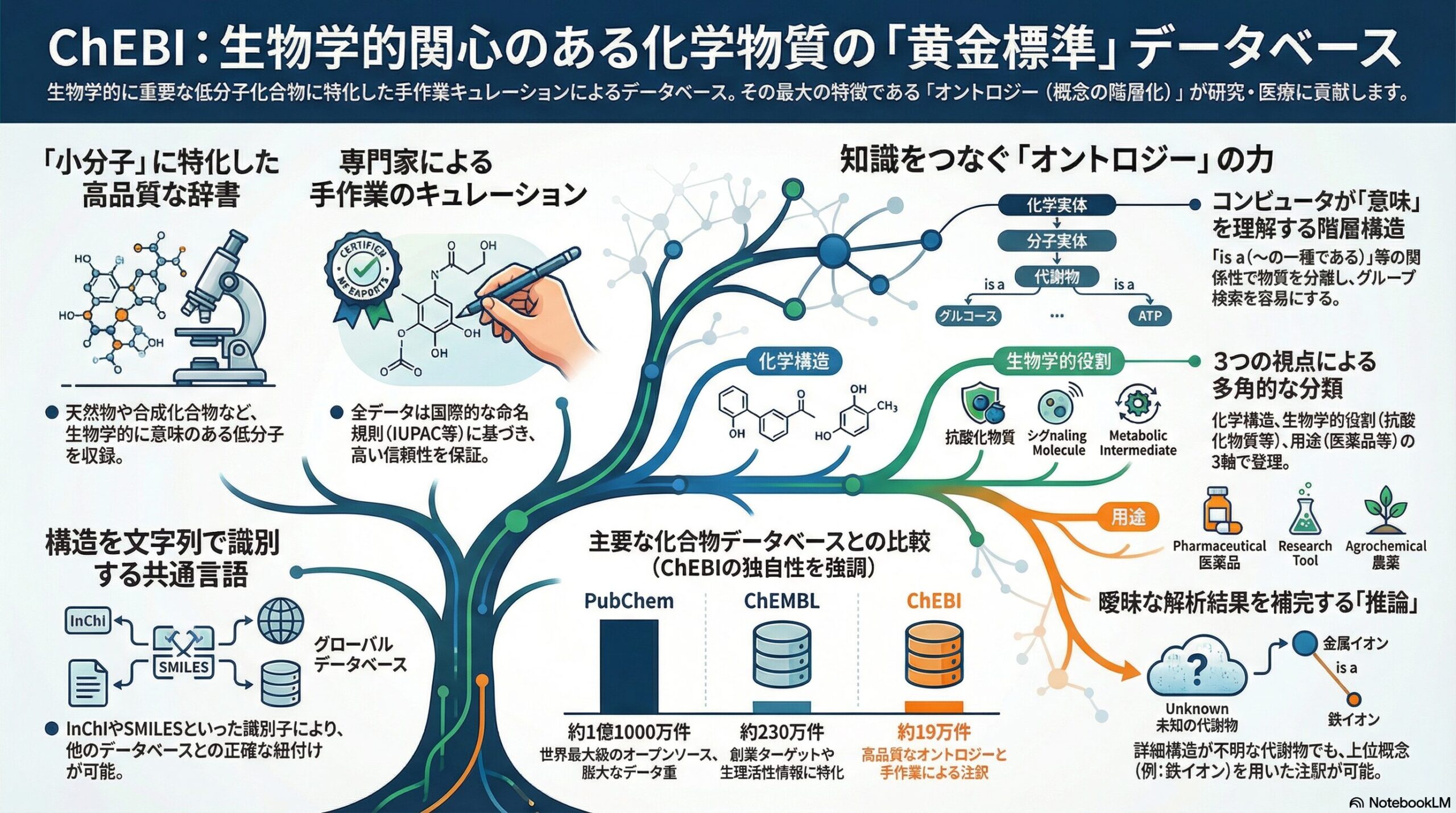 化学物質の「黄金標準」ChEBI:専門家による手作業のキュレーションと、知識をつなぐオントロジー(概念の階層化)が医療・研究に貢献します。