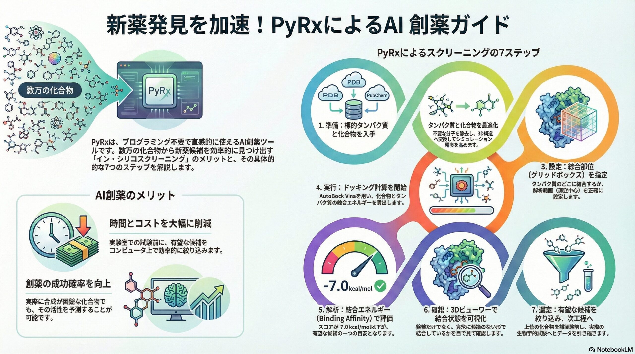 PyRxを用いたAI創薬のメリットとスクリーニング実行の全体フロー